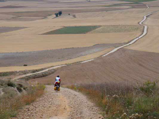 Percorreremo volutamente la vasta meseta , altopiano composto da lievissime ondulazioni che il ciclista percepisce. Territori ampi, vastissimi, interminabili, con paesaggio invariato, percorsi sterrati lontani dall’asfalto e dal traffico, dove si scopre il silenzio.